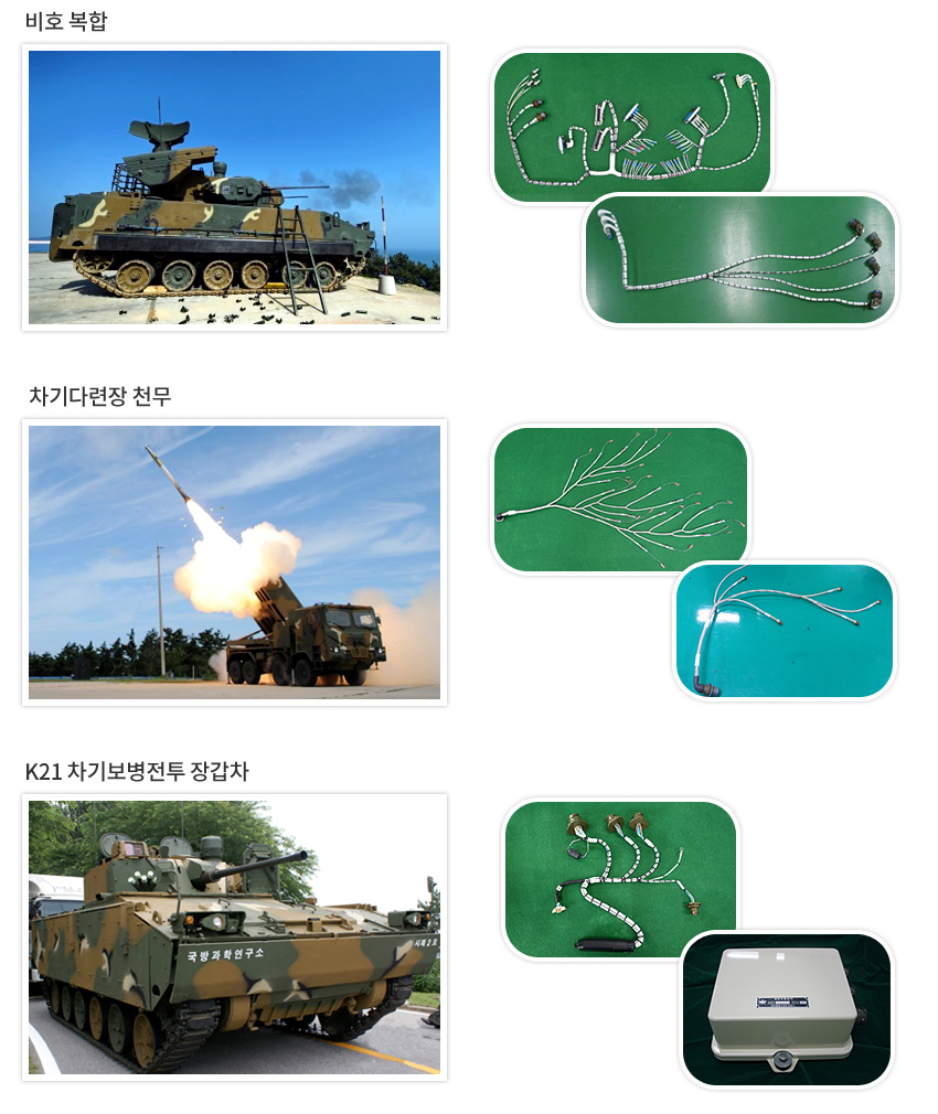 소요되는 특수 목적용 케이블 조립체 및 와이어링 하네스를 전문으로 설계/생산하는 기업입니다.